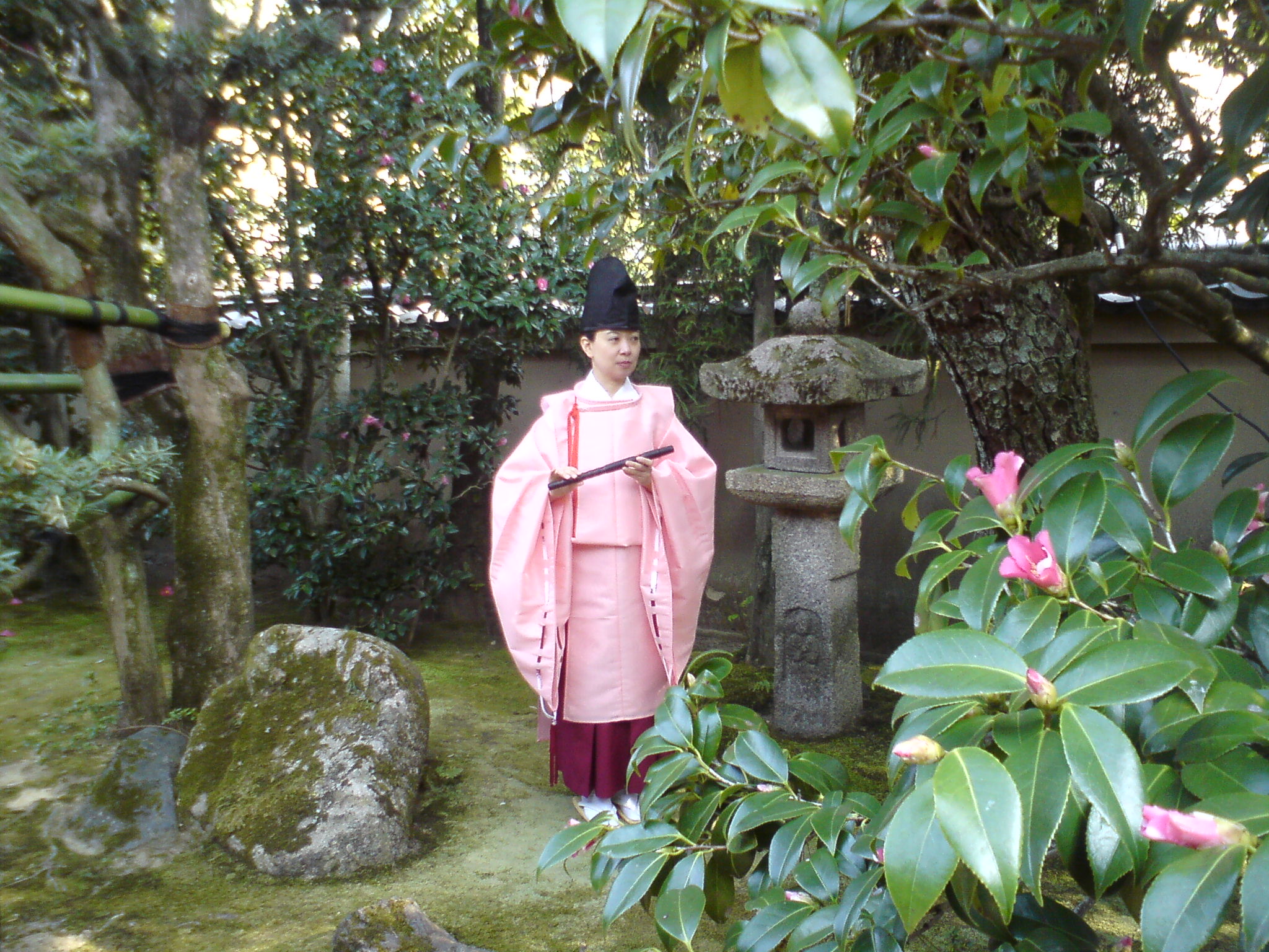 Jag träffade Nonaka Kumiko tack vare dansaren och koreografen Heidi S Durning som jag har haft flera samarbeten med i Japan och i Lappland. Förra året filmade jag och Folke Johansson flera danskonstnärer i Kyoto för vår kommande film Solens Dans. Vi filmade även Nonaka san då hon spelade och även berättade om sitt instrument, bambuflöjten Noh-kan som är ett av de instrument som spelas på Noh-teatern. Hon bar en särskild kostym med en traditionell hatt och hon förklarade att det var en shirabyoshi-kostym. Jag berättade att jag var mycket intresserad av just shirabyoshi; gatukonstnärer som dansade, sjöng och skrev poesi, utklädda till män.