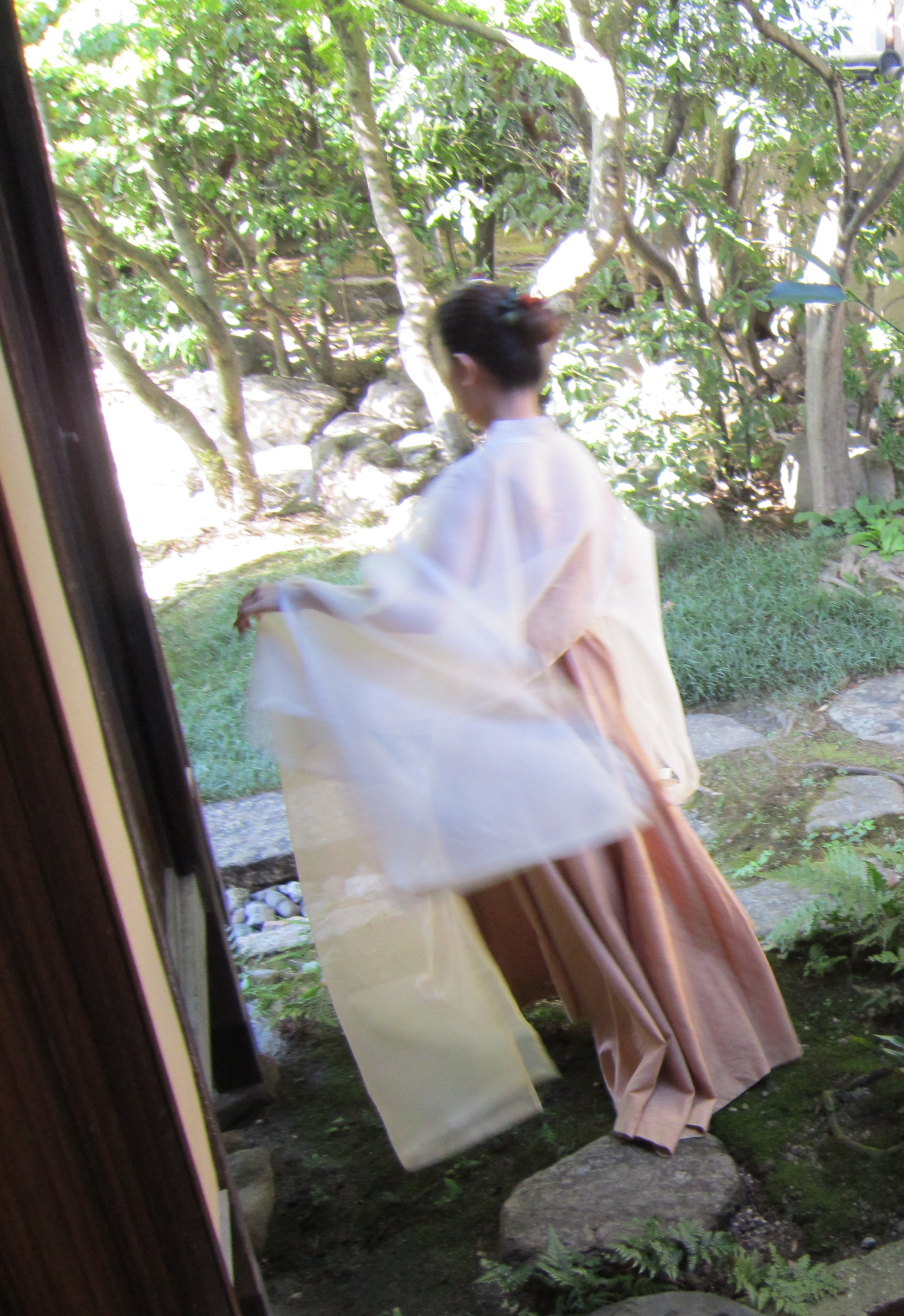 I somras träffades vi flera gånger och Nonaka berättade om den musik som shirabyoshidansarna dansade och sjöng till. Det kallades modern musik och modern dans, som var populär i tvåhundra år. Det är en musik som idag är bortglömd – men texterna finns delvis kvar. De tecknades ned 1179 med hjälp av kejsaren Go-Shirakawa och shirabyoshidansaren Otomae. Sångerna var försvunna i ett par hundra år tills en del av dem återfanns i ett antikvariat i Tokyo 1911.